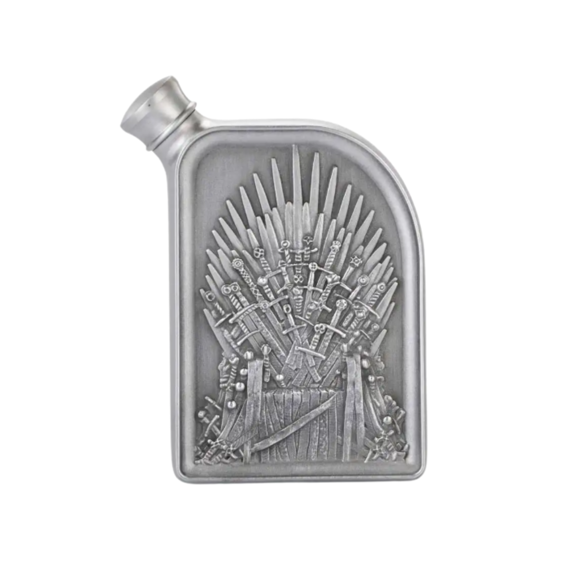 Seat of the King of the Andals, the Rhoynar and the First Men, the Iron Throne takes centre stage, sculpted in exacting low relief on a wineskin-shaped pewter hip flask. The sigils of Houses Baratheon, Lannister, Stark and Targaryen are cast into the flask’s reverse.