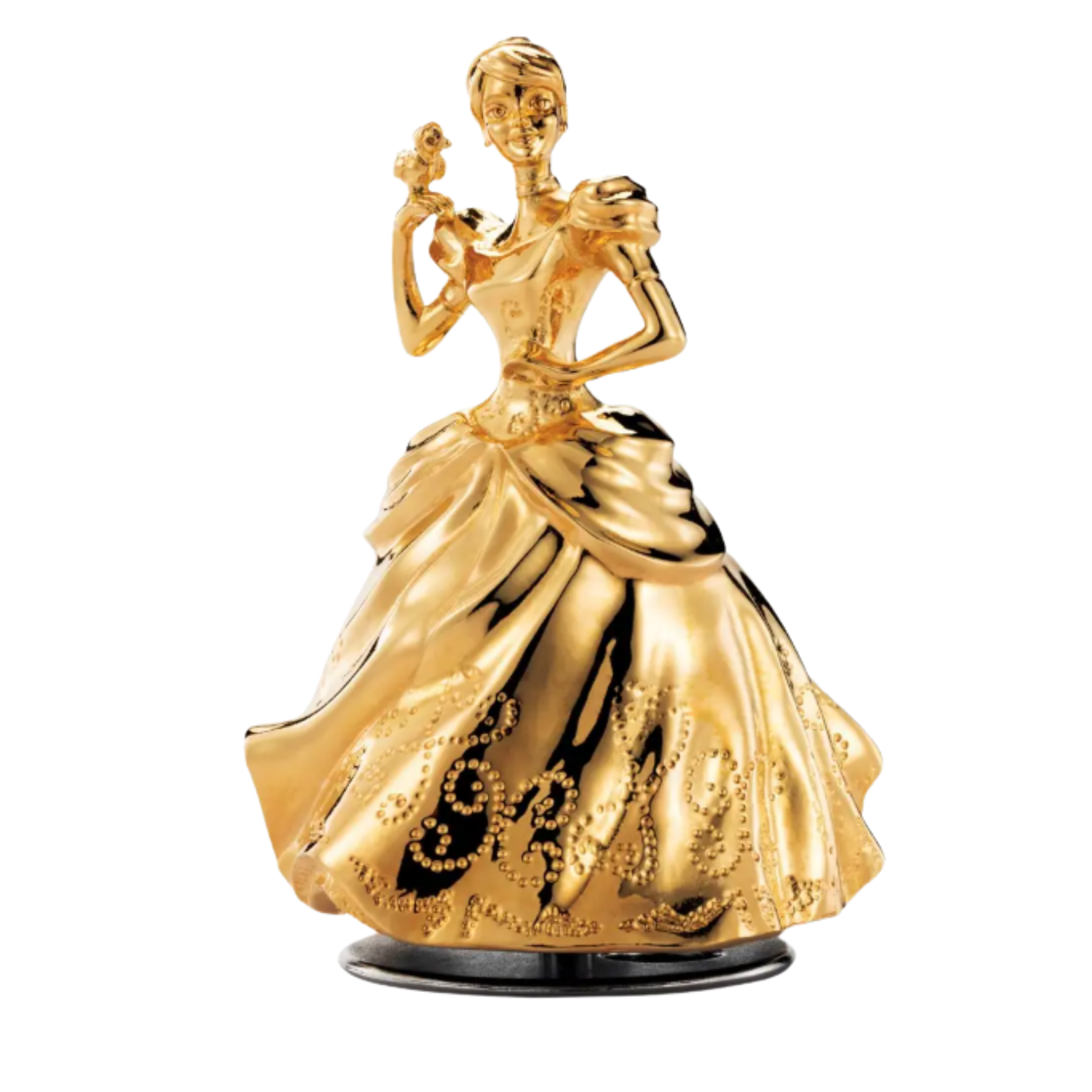 Gilded in 24K gold to celebrate the 70th anniversary of its cinematic release in 1950, Cinderella waltzes to A Dream Is A Wish Your Heart Makes in the quintessential fairytale romance.