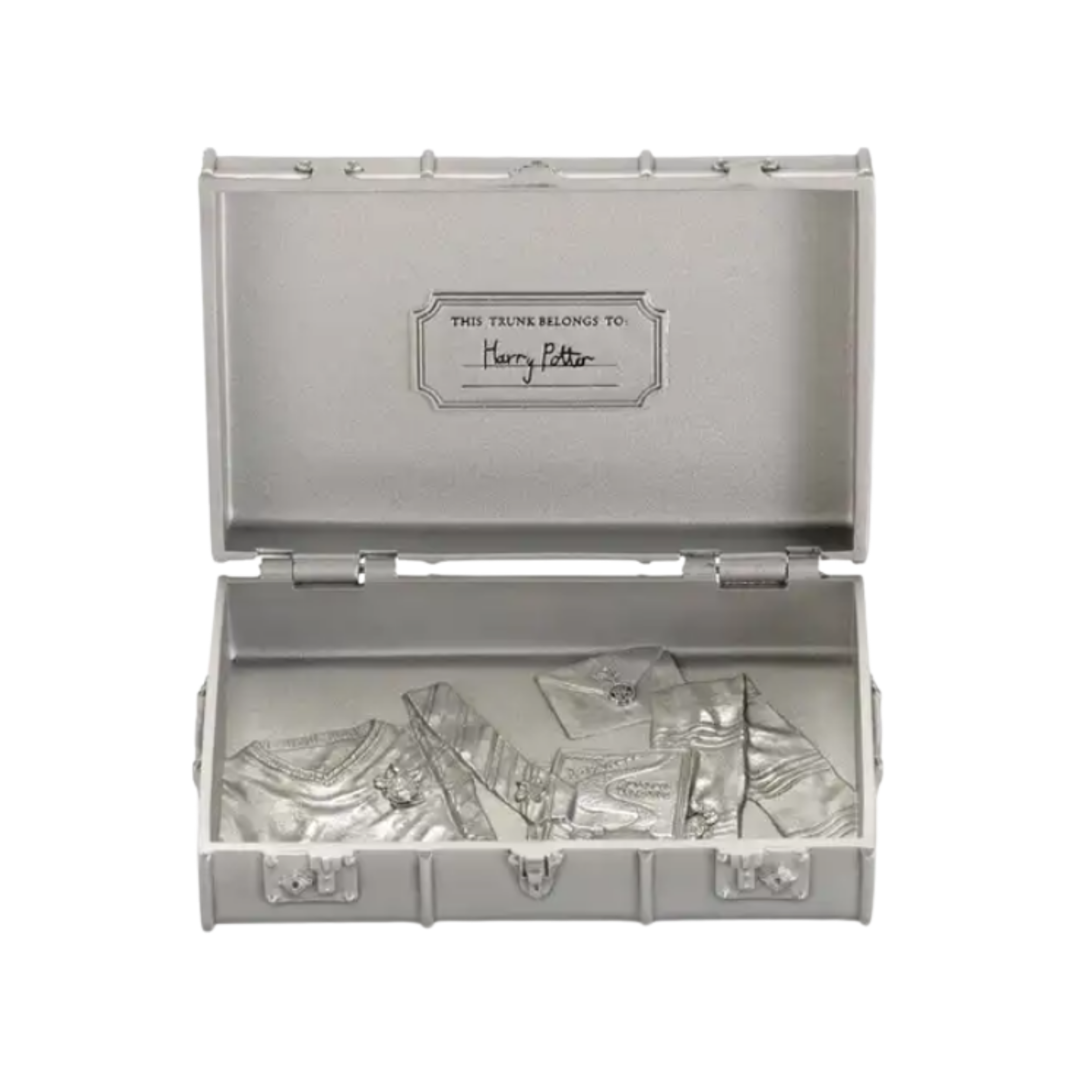 A piece of kit familiar to anyone who’s boarded, Harry’s trunk packs in everything required for the school year at Hogwarts. This pewter miniature of the original replicates its fittings, straps and Hogwarts crest, and accommodates small treasures as well as conventional business cards. Ignore the bits and bobs Harry’s left inside.